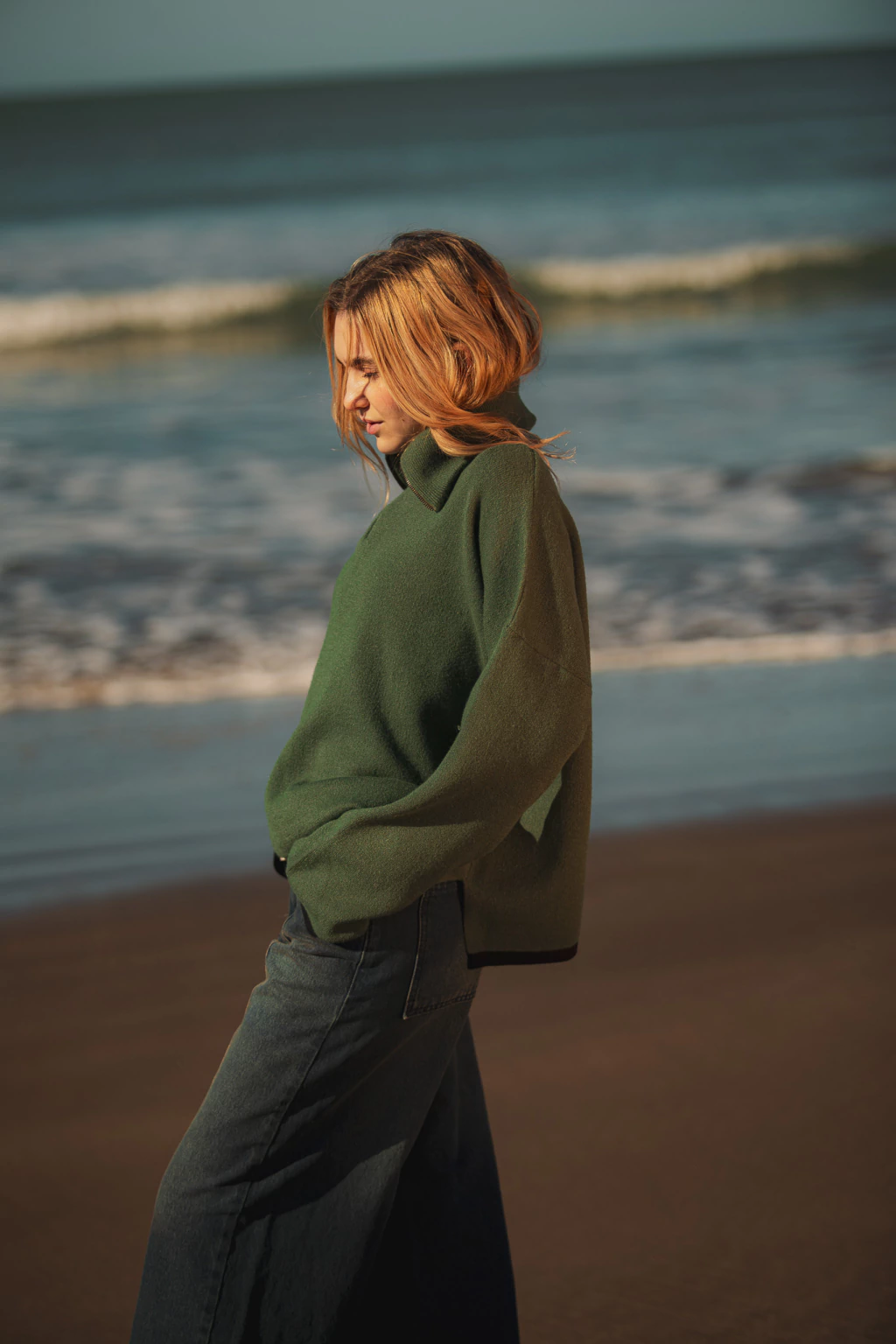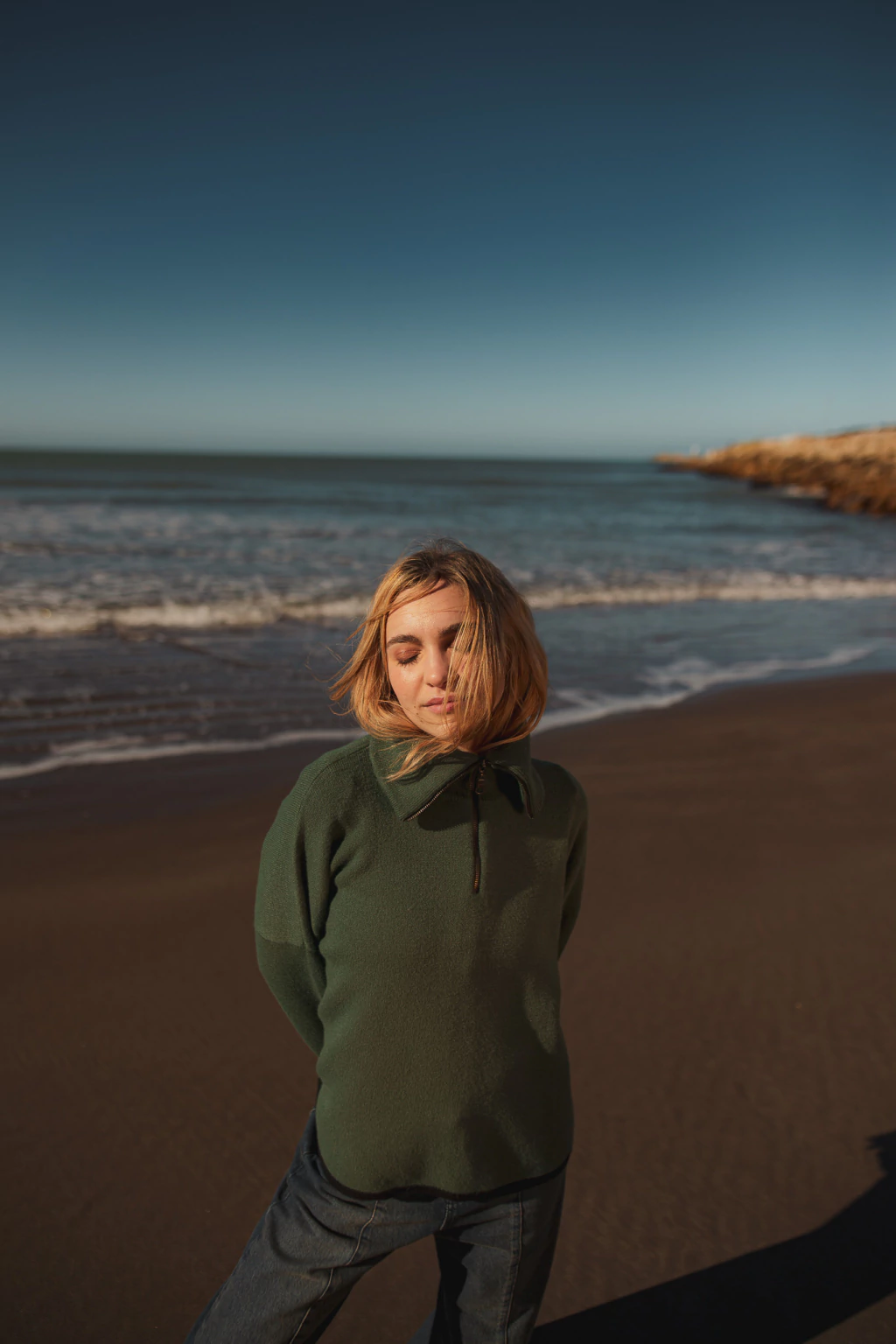 Sweater Alvear con cierre y cuello polo, con borde contracolor.